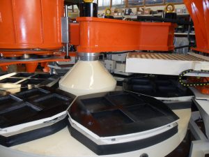 Cùng một khuôn, chỉ cần thay đế hoa văn cao su sẽ cho ta các loại gạch với hoa văn khác nhau hoặc gạch phẳng.